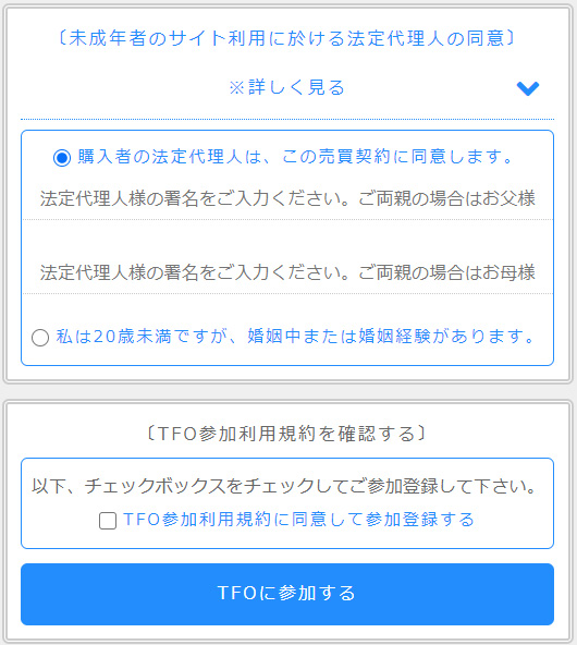 - 購入者が18歳未満であっても、婚姻中または婚姻経験のある方の場合は、法定代理人の同意は必要ありません。