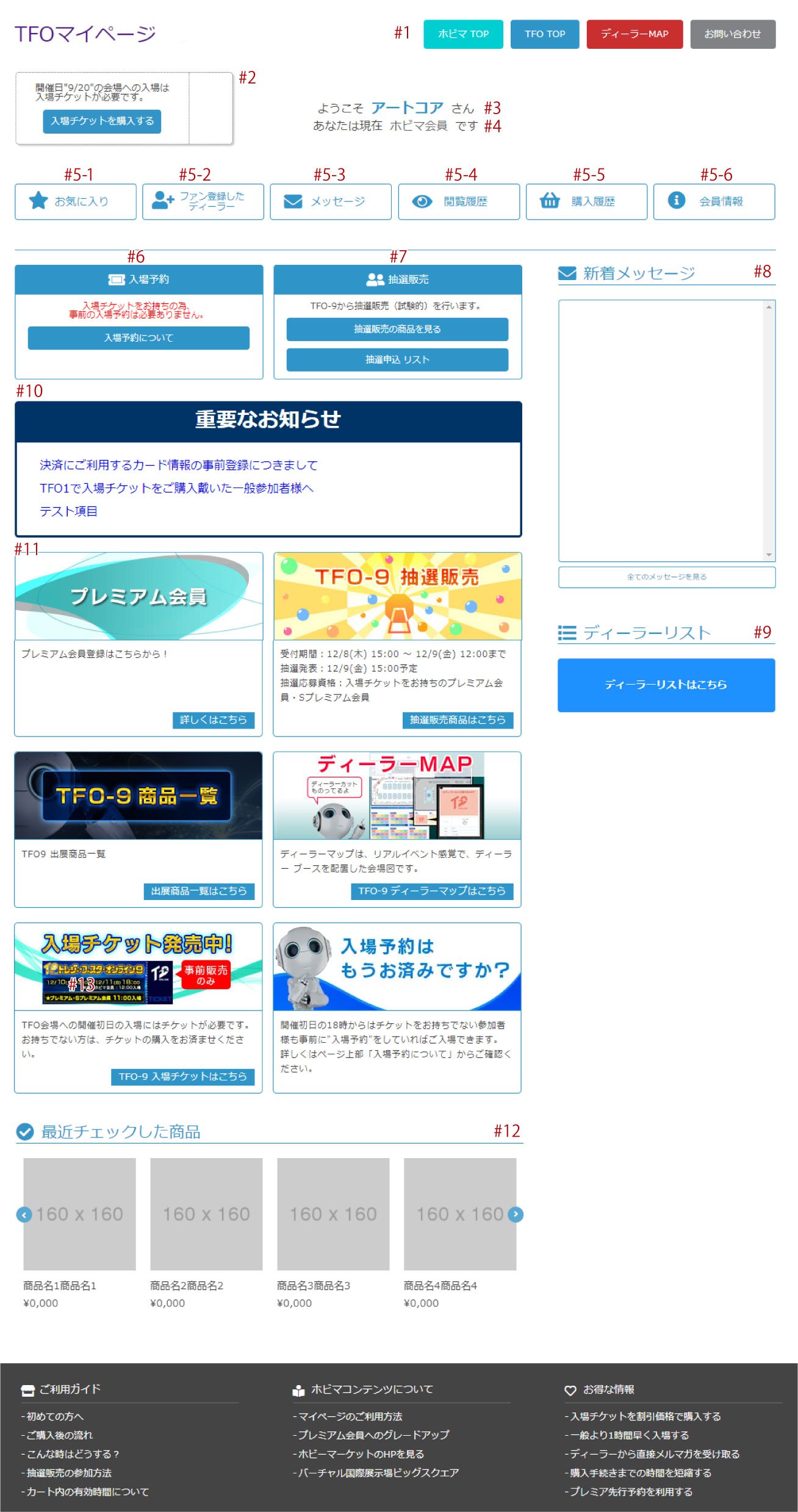 - 「ようこそ○○さん」と、ホビマ会員で登録したニックネームが表示されます。